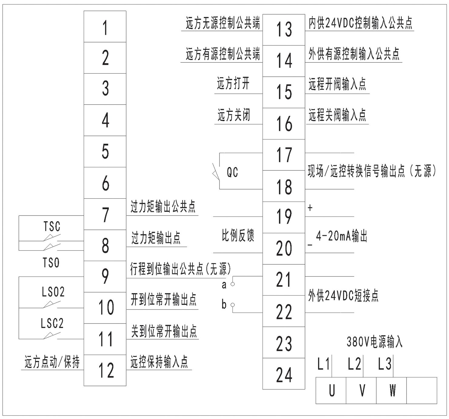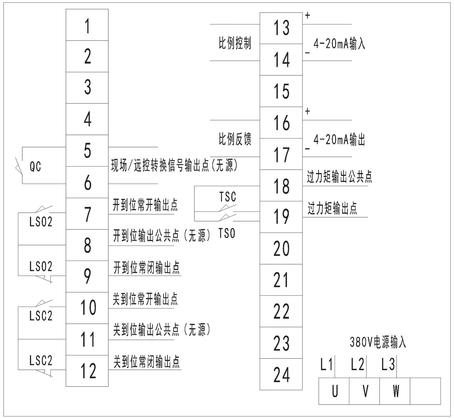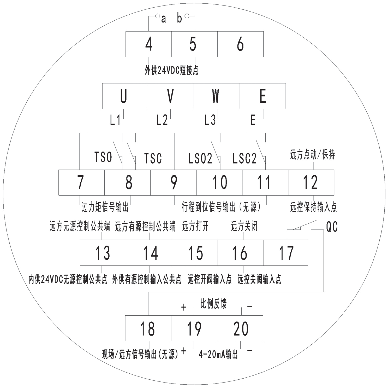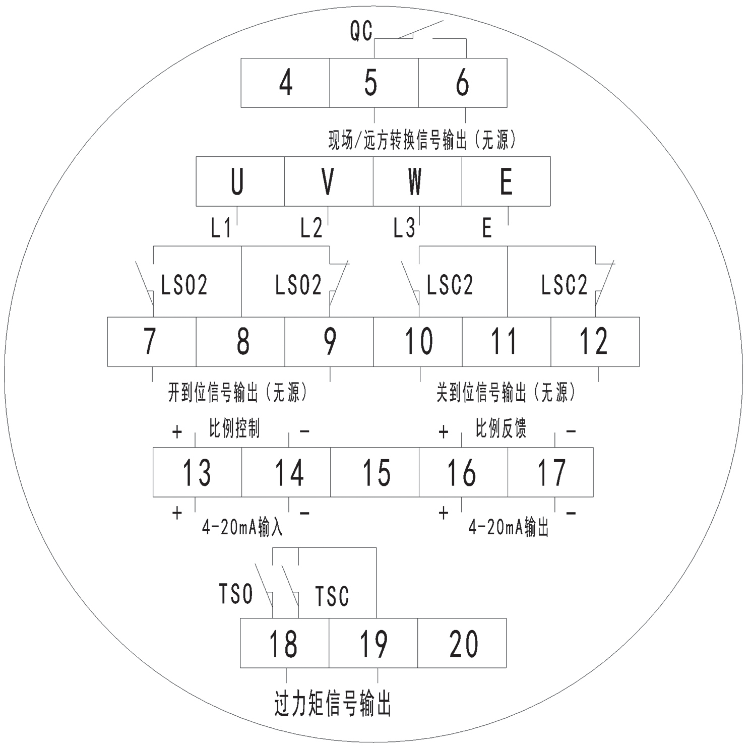 整體調節型閥門電動(dòng)裝置端子接線圖-戶外                整體調節型閥門電動裝置端子(zǐ)接線圖隔爆